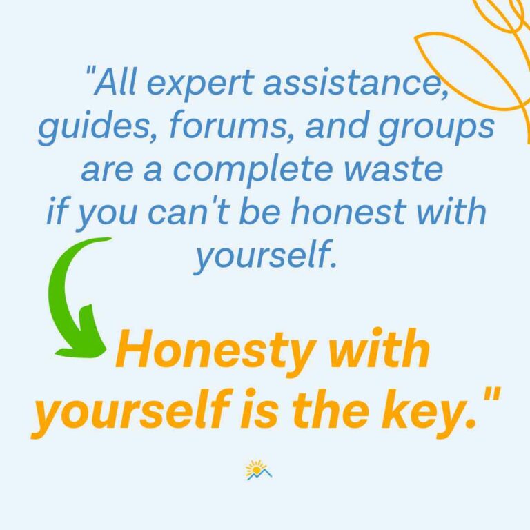 All expert assistance, guides, forums, and groups are a complete waste if you can’t be honest with yourself. Honesty with yourself is the key. You are the only one that has you covered all the time, so there’s no point to lie to anyone else in this regard. Let yourself be exposed to the truth.
